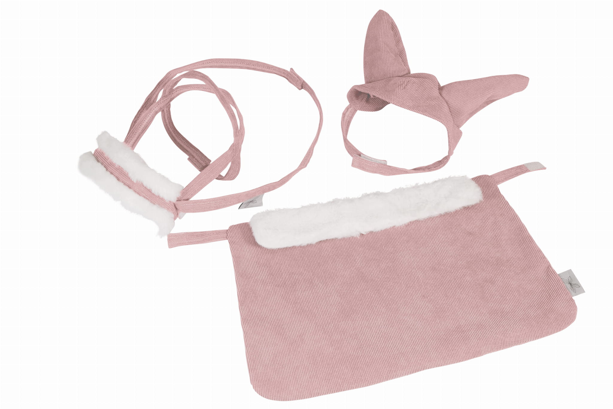 Komplet wykonany jest z uroczego mięciutkiego sztruksu z pluszem zarówno na kocyku jak i na kantarach.