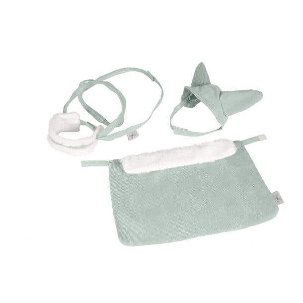 Komplet wykonany jest z uroczego mięciutkiego sztruksu z pluszem zarówno na kocyku jak i na kantarach.