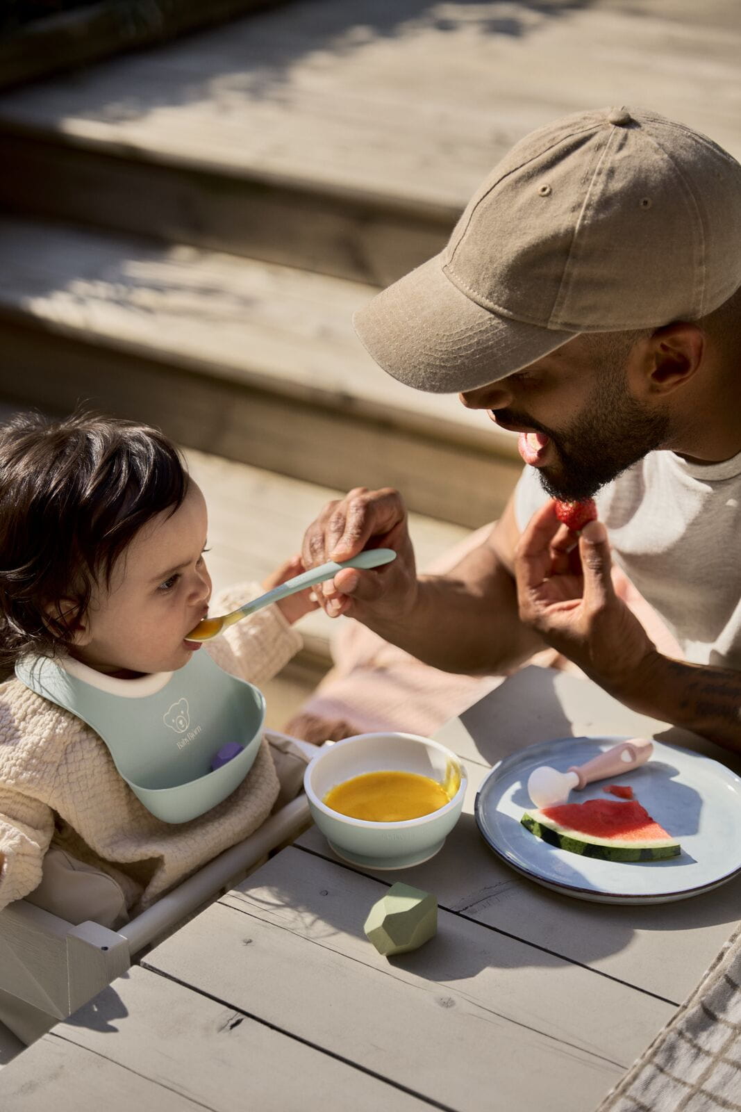 - Bezpieczeństwo: Wszystkie produkty kuchenne BabyBjörn posiadają certyfikaty dopuszczenia do kontaktu z żywnością i spełniają odpowiednie wymogi bezpieczeństwa dotyczące tworzyw sztucznych obowiązujące w Europie i USA. Nasze produkty kuchenne poddawane są ciągłym testom na zawartość bisfenolu A (BPA) i innych substancji chemicznych.