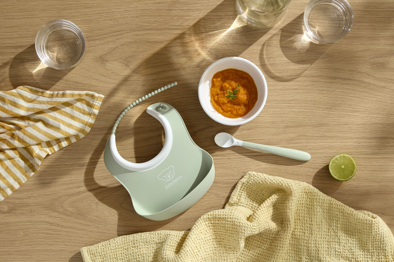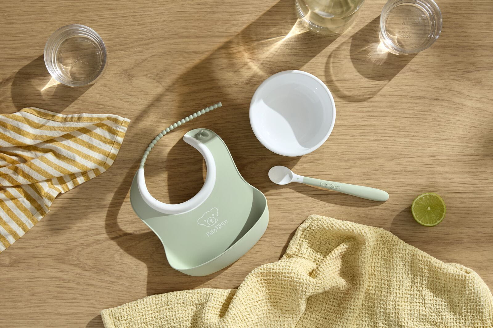 BABYBJORN - Zestaw do karmienia 3 szt. - Powder Green