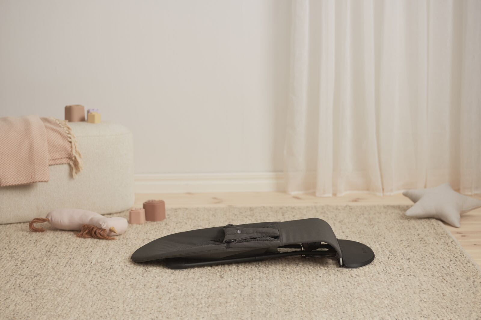 BABYBJORN - leżaczek BALANCE SOFT WOVEN/JERSEY Tri Fabric w kolorze Ciemny Szary z ramą w kolorze czarnym