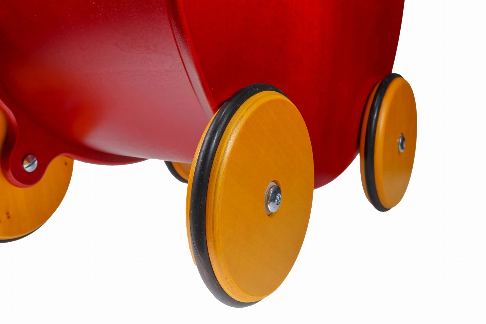 Zabawka w całości wykonana jest z naturalnej okleiny brzozowej o grubości 10 mm oraz drewnianych kół zakończonych gumową taśmą. Wózek pokryty jest ekologicznym impregnatem z atestem. Zatem nie musisz martwić się o substancje uczulające.