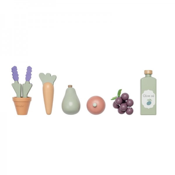 Zawartość zestawu:1x torba materiałowa1x doniczka z lawendą1x chleb1x karton mleka1x butelka oliwy z oliwek1x ser1x marchewka1x cebula1x pomidor1x worek mąki1x jajko1x winogrona1x gruszka1x kiełbasa1x mięso1x ryba1x ser brie1x rogalik/crossaintStragan to zabawka, która rozweseli każdego małego handlarza i pomoże w nauce podstawowych umiejętności matematycznych i społecznych!