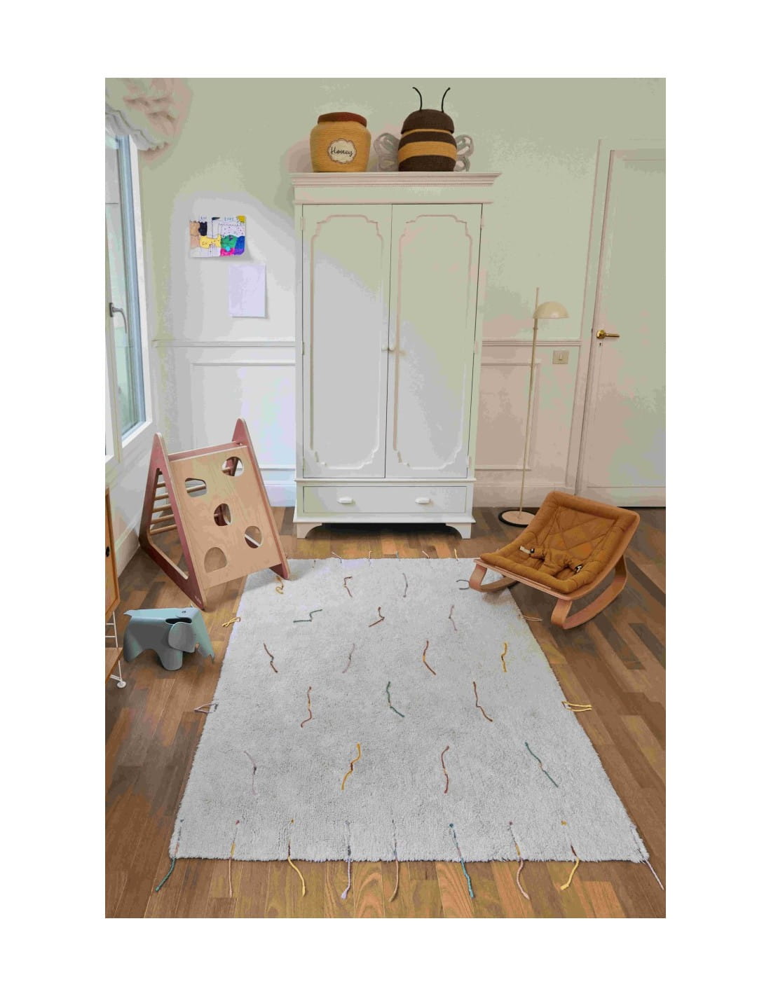 Pozwól maluchom stać się prawdziwymi ogrodnikami, sprawiając, że ich własny wewnętrzny ogród rozkwitnie dzięki naszemu interaktywnemu dywanowi Wilflower. Dywan jest uszyty z miękkiej mieszanki bawełny w odcieniach naturalnych i kości słoniowej, z haftowanymi kolorowymi sznurkami na obrzeżach jako frędzlami, a także umieszczonymi na całym dywanie w symetrycznym wzorze. W zestawie znajduje się 14 kwiatów z bawełnianego płótna, które można łatwo zawiązać na dywanie za pomocą kolorowych sznurków. Innowacyjny sposób na dodanie odrobiny koloru do każdego pomieszczenia i pozwolenie najmłodszym na rozwinięcie wyobraźni i kreatywności.