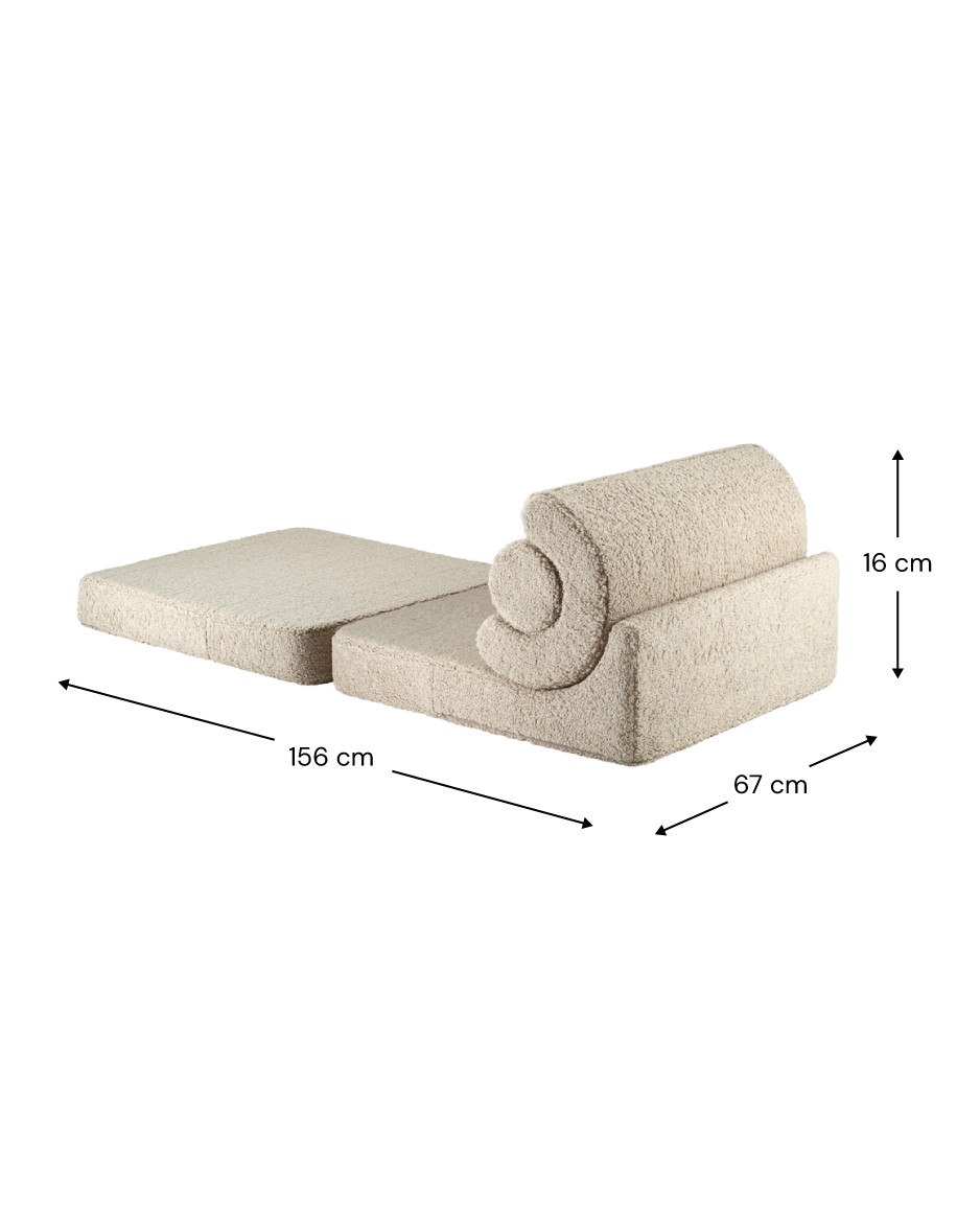 Wigiwama Flipster Biscuit to nowoczesny modułowy fotel dla dzieci, który łączy wygodę, funkcjonalność i estetyczny design. Ten wszechstronny mebel został zaprojektowany tak, aby dopasowywać się do codziennych potrzeb dziecka — może pełnić funkcję przytulnego siedziska, miejsca do czytania, kreatywnej bazy do zabawy, a po rozłożeniu także wygodnego łóżka.