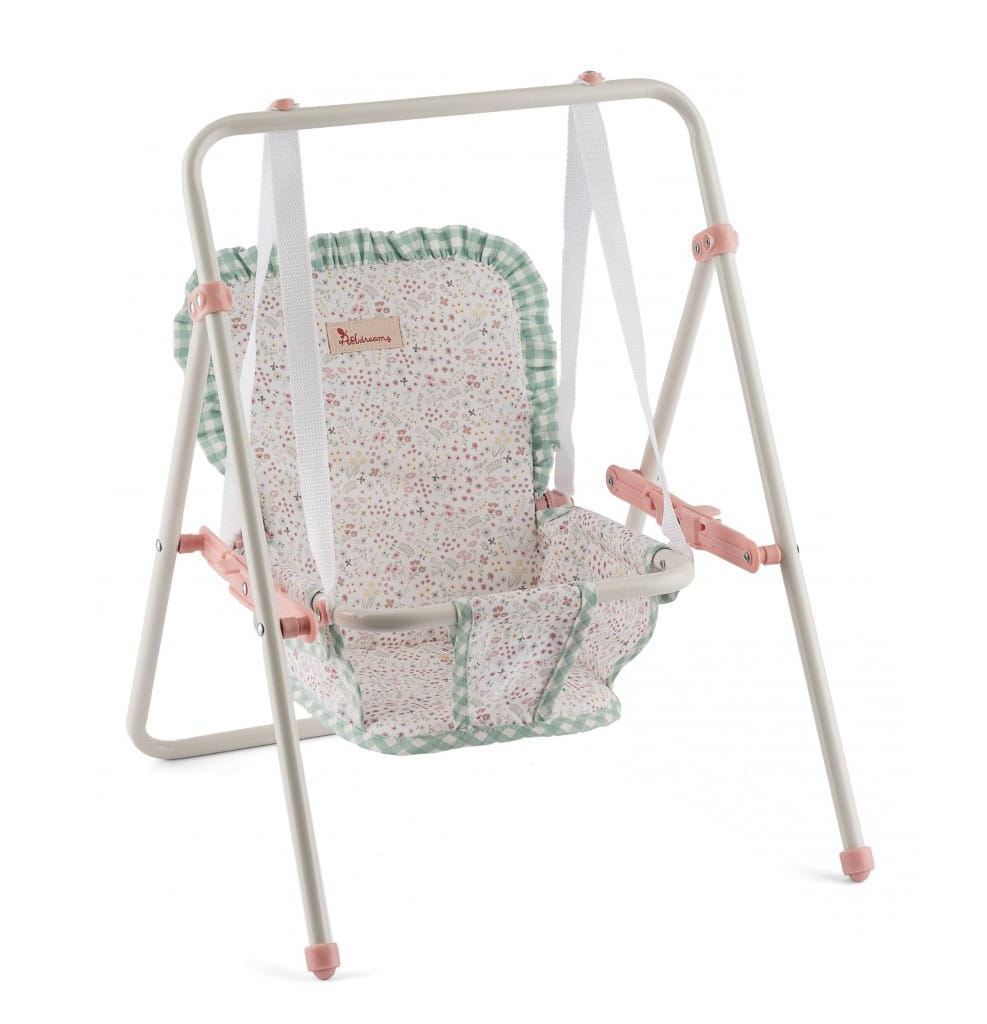 Urzekająca modnym designem i funkcjonalnością huśtawka cenionej hiszpańskiej marki ASI została zaprojektowana dla lalek o wysokości od 36 do 46cm. Uzupełnia popularną kolekcję akcesoriów Cloe. Zachwyca uroczy wzór kwiatuszkowej łąki w delikatnej miętowej kolorystyce. Huśtawka ta jest idealnym dodatkiem uzupełniającym pomysłową zabawę najmłodszych. Pozwala im tworzyć niezapomniane historie i spędzać wyjątkowe i niezapomniane chwile z ulubionymi towarzyszami zabaw: bobasami, lalkami klasycznymi lub maskotkami.