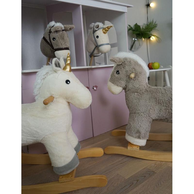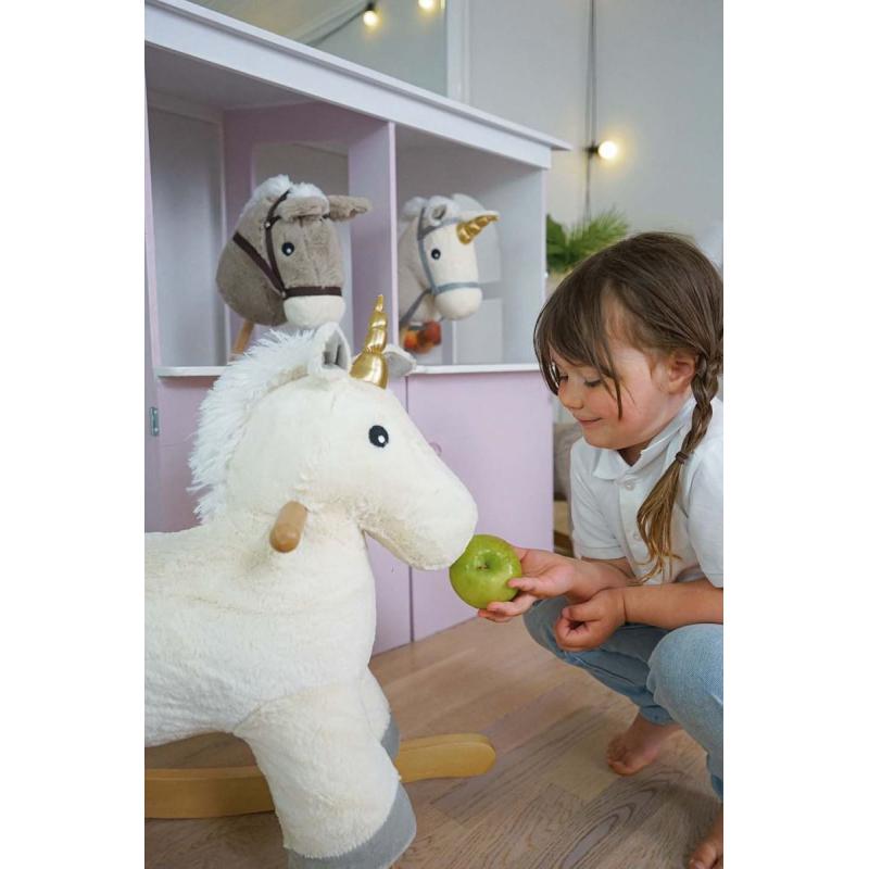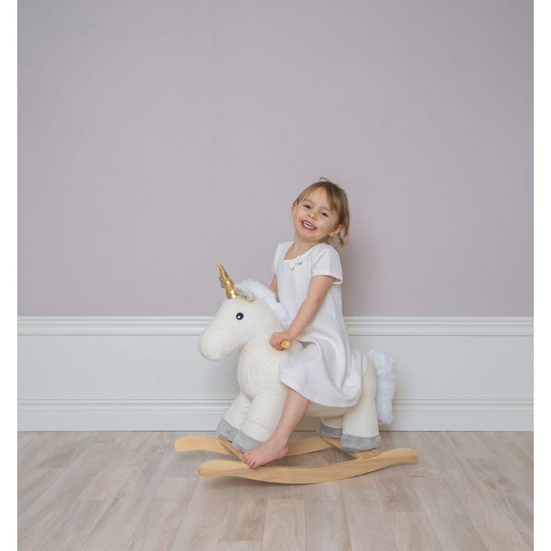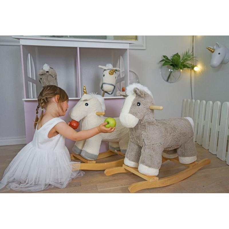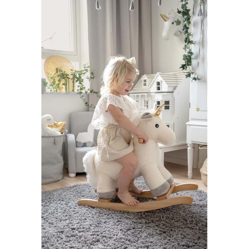 Ponadczasowa Zabawka na Biegunach: Nasz jednorożec nie tylko skradnie serce każdemu dziecku, ale również stanie się niezapomnianym prezentem na roczek dla małej księżniczki. Wykonany z drewna i pluszu najwyższej jakości, gwarantuje bezpieczną i przyjemną zabawę dla maluchów od 12 miesiąca życia.