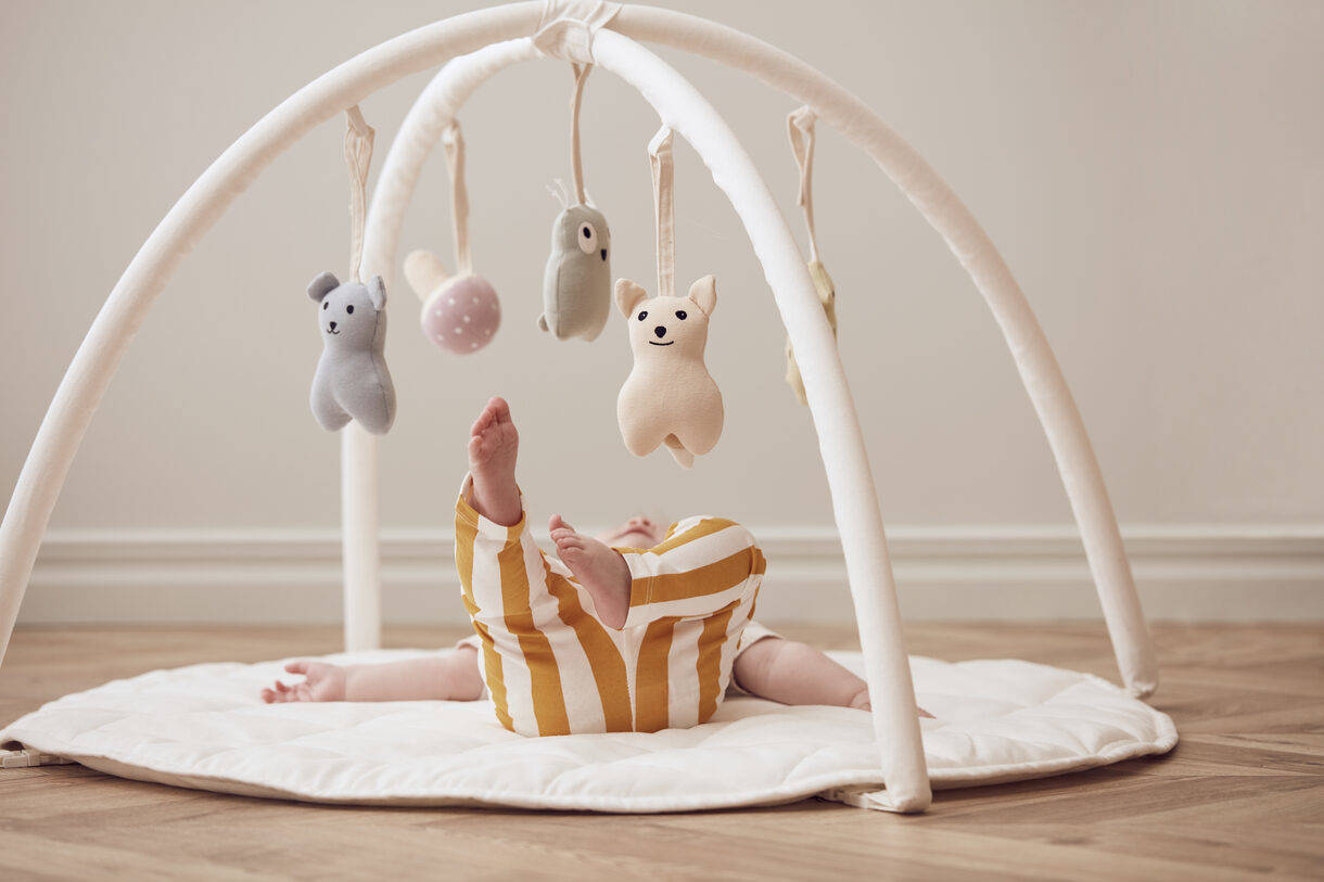 Możesz do niej dodać dowolne wybrane przez nas zabawki do ćwiczeń dla niemowląt. Kiedy dziecko zacznie siadać, pałąki maty można zdemontować, a potem używać jej jako miejsca do zabawy. Zabawki sprzedawane są osobno. Można prać w temperaturze 40 ℃. Suszyć na płaskiej powierzchni.