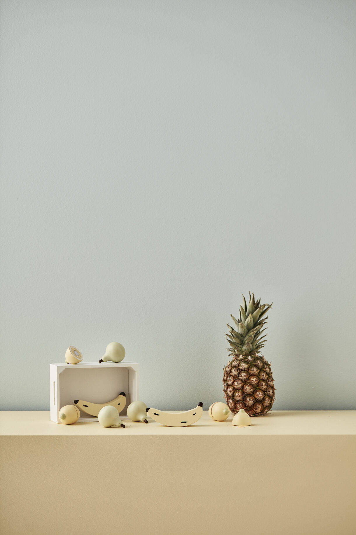- Wymiary: Skrzynka na owoce: 18x12x5,5 cm. Banan: 11,5 cm. Pozostałe owoce: 4,5x4,5x5 cm.