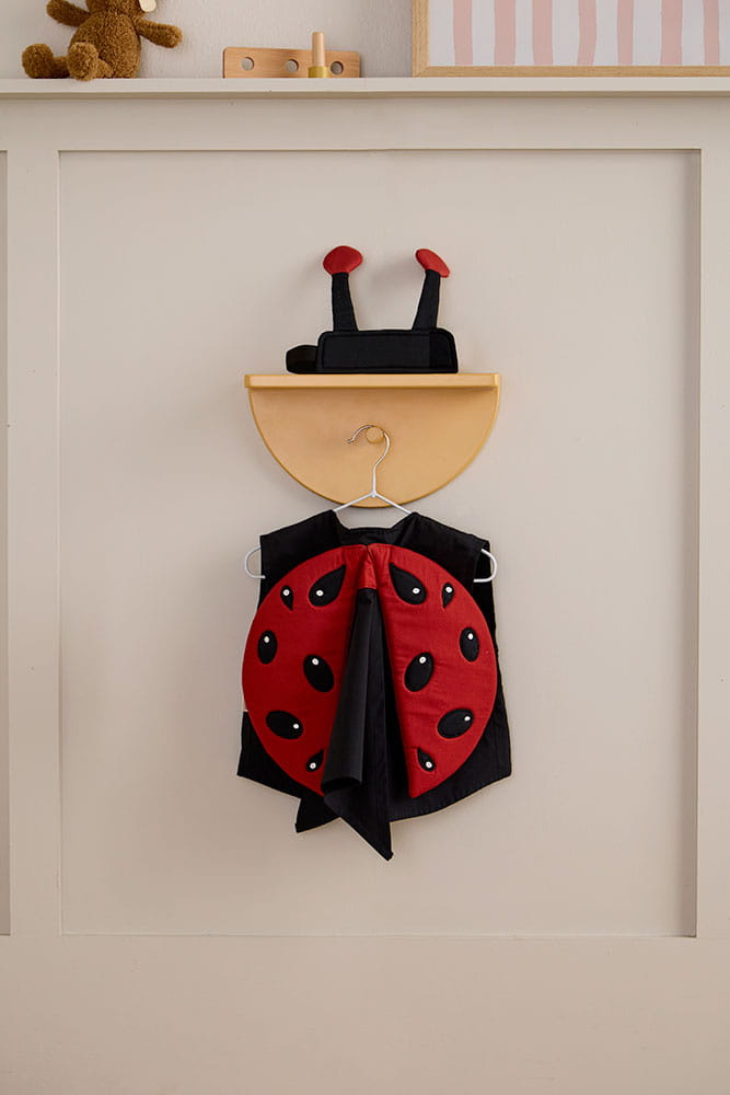 W ogrodzie biedronki są prawdziwymi pomocnikami, bo zjadają owady szkodzące roślinom. Strój Biedronki od Elodie to idealna inspiracja do kreatywnej zabawy. Zestaw zawiera miękką czarną kamizelkę, ciemnoczerwone skrzydełka z haftowanymi czarnymi kropkami oraz opaskę z miękkimi, elastycznymi czułkami. Całość łatwo zakłada się i zdejmuje dzięki wygodnym zapięciom na rzepy.