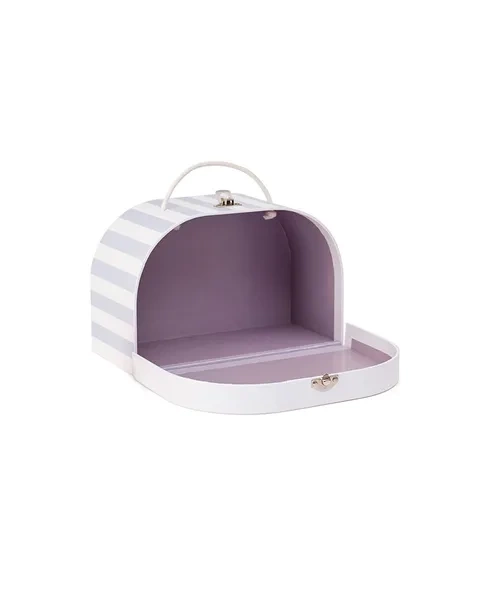 Lekka, kartonowa walizka z uroczą grafiką przedstawiającą rodzinę Muminków przy napojach. Idealna do przechowywania dziecięcych skarbów, zabawkowej zastawy czy lunchu na piknik. Bawełniany uchwyt i metalowe zamknięcie sprawiają, że dziecko może ją z łatwością przenosić.