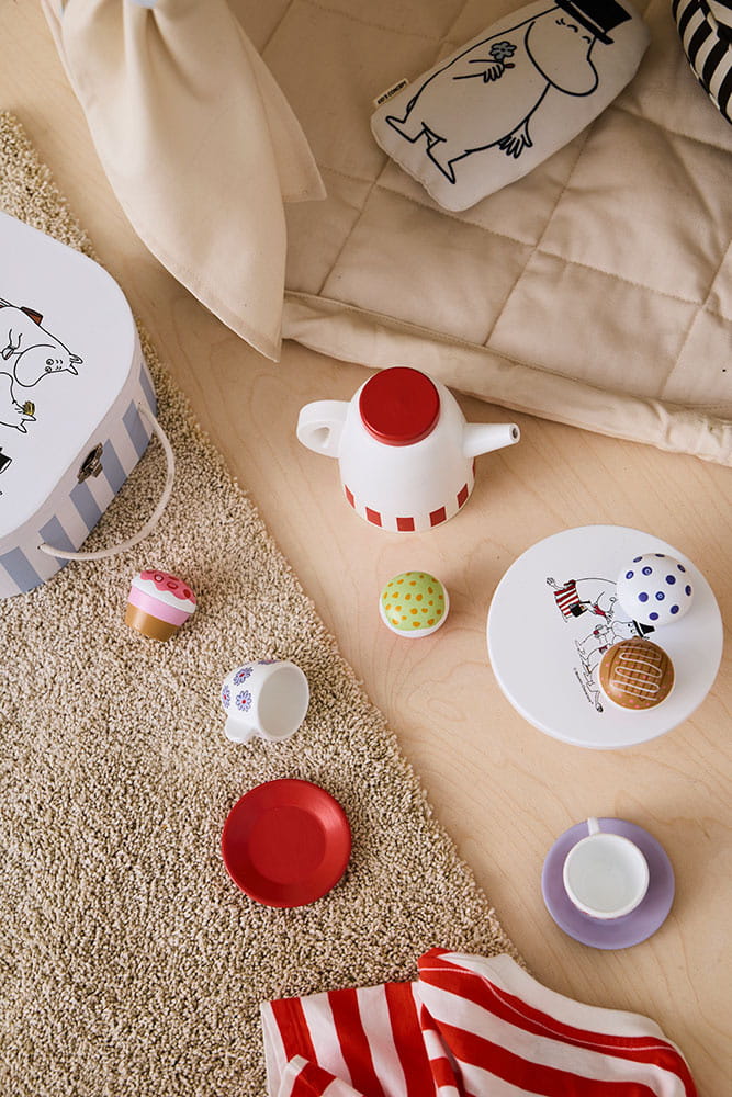Drewniany zestaw kawowy inspirowany światem Muminków przenosi dzieci do Doliny Muminków, gdzie każda okazja jest dobra, by wspólnie napić się kawy lub herbaty. W Muminkowie kawa odgrywa ważną rolę w chwilach odpoczynku, a Muminpapa w szczególności nie wyobraża sobie dnia bez filiżanki tego napoju.