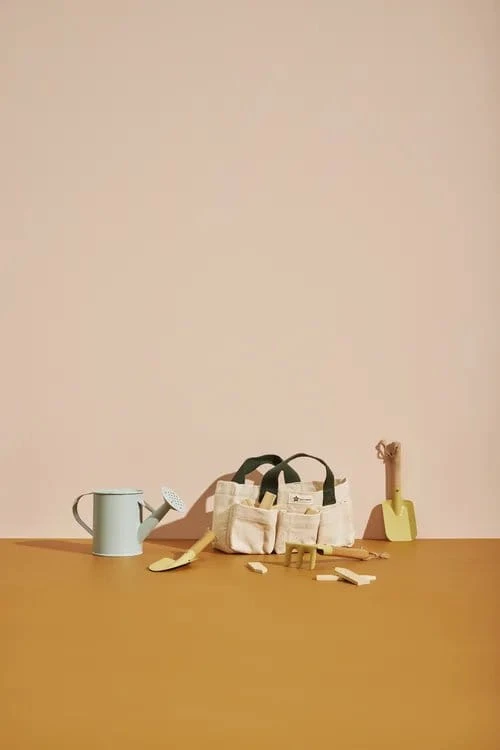 Rozbudź w dziecku miłość do ogrodnictwa. Ten zestaw narzędzi ogrodniczych to fantastyczny sposób na wprowadzenie dzieci do wspaniałego świata ogrodnictwa już od najmłodszych lat. Zawiera narzędzia niezbędne do rozpoczęcia zielonej przygody: płócienną torbę bawełnianą, konewkę, rydel, grabie i łopatę. Do tego osiem drewnianych znaczników, na których można umieścić nazwy uprawianych roślin. Uzupełnieniem zestawu narzędzi ogrodowych będzie Kid's Concept - Fartuch ogrodnika KID'S HUB - do kupienia osobno.