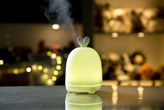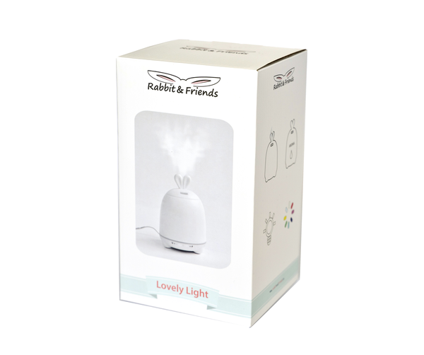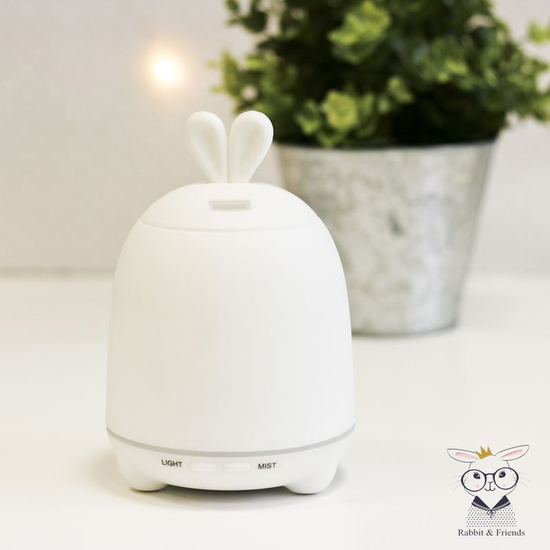 Lampka DYFUZOR Rabbit&Friends z króliczymi uszami przynosi szereg korzyści płynących z nawilżenia powietrza oraz aromaterapii. To sprawdzony sposób na poprawienie poziomu wilgotności w pokoju dziecka.Chłodna mgiełka wytwarzana przez urządzenie jest przyjemna i bezpieczna. Światło LED ze zmieniającymi się kolorami, pozwala na wygodną obsługę dyfuzora w godzinach nocnych. Lampka z dyfuzorem to zdrowy, przyjemny i komfortowy sen każdego dziecka.