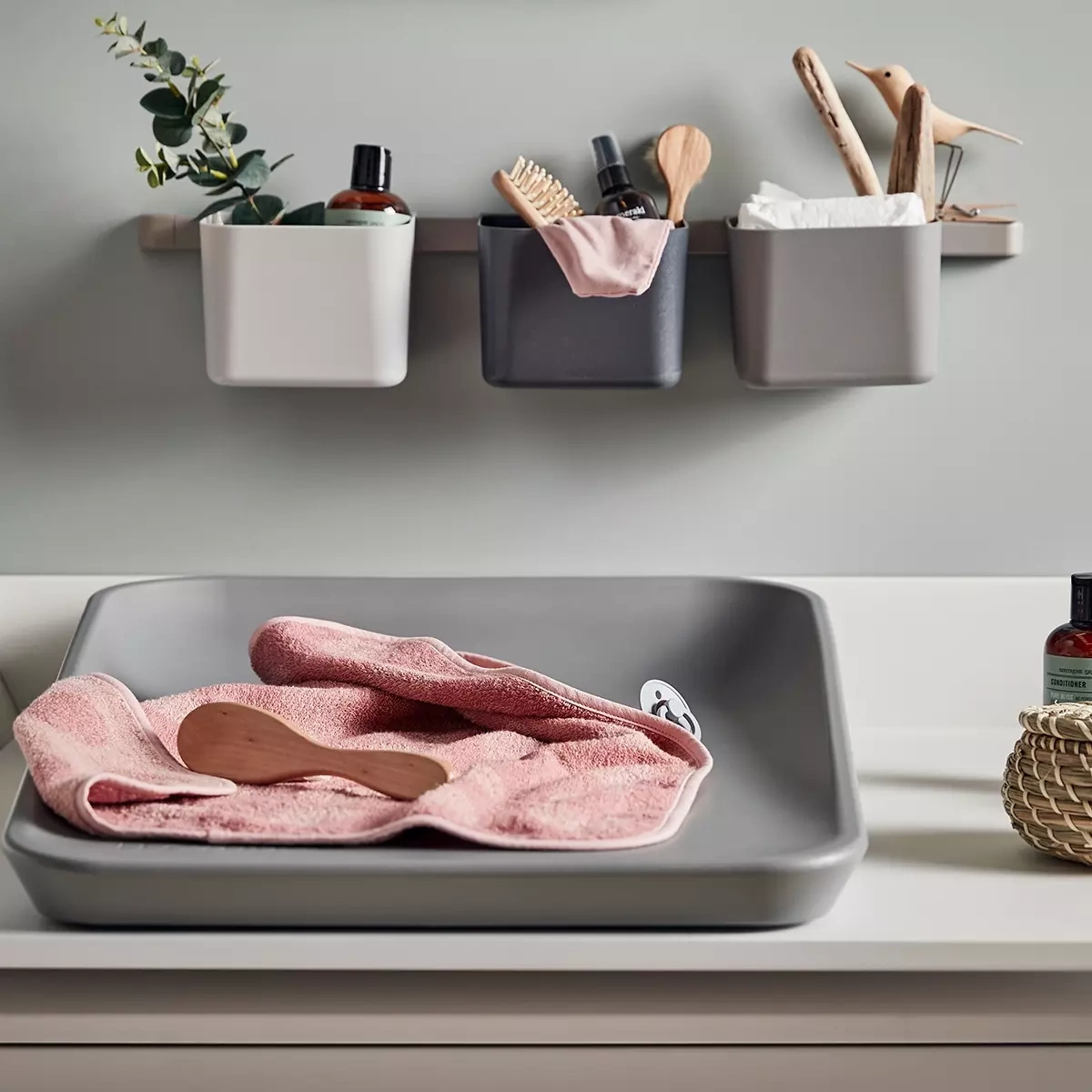 LEANDER - organizer na pieluchy i akcesoria dziecięce - 3 sztuki, 4 haczyki i 2 szyny (długa i krótka), szary
