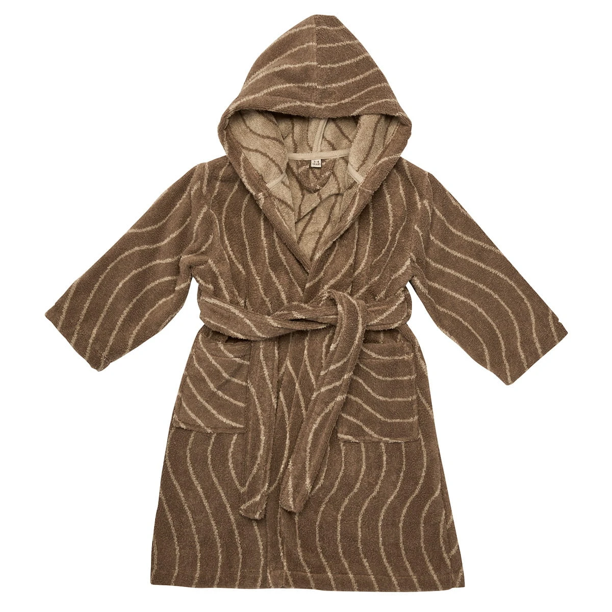 Szlafrok ma unikalny, zabawny i ręcznie rysowany wzór. Uniwersum Woodland zostało zaprojektowane we współpracy z projektantką tekstyliów Sine Mendgaard-Johannsen, która ręcznie rysuje swoje nadruki za pomocą wyjątkowej i zabawnej linii. Każdy pasek opowiada swoją własną historię. Paski prowadzą do przygód; ukryte ścieżki, zaczarowane zwierzęta lub tajemnicze jaskinie, w których czekają na odkrycie przygody.