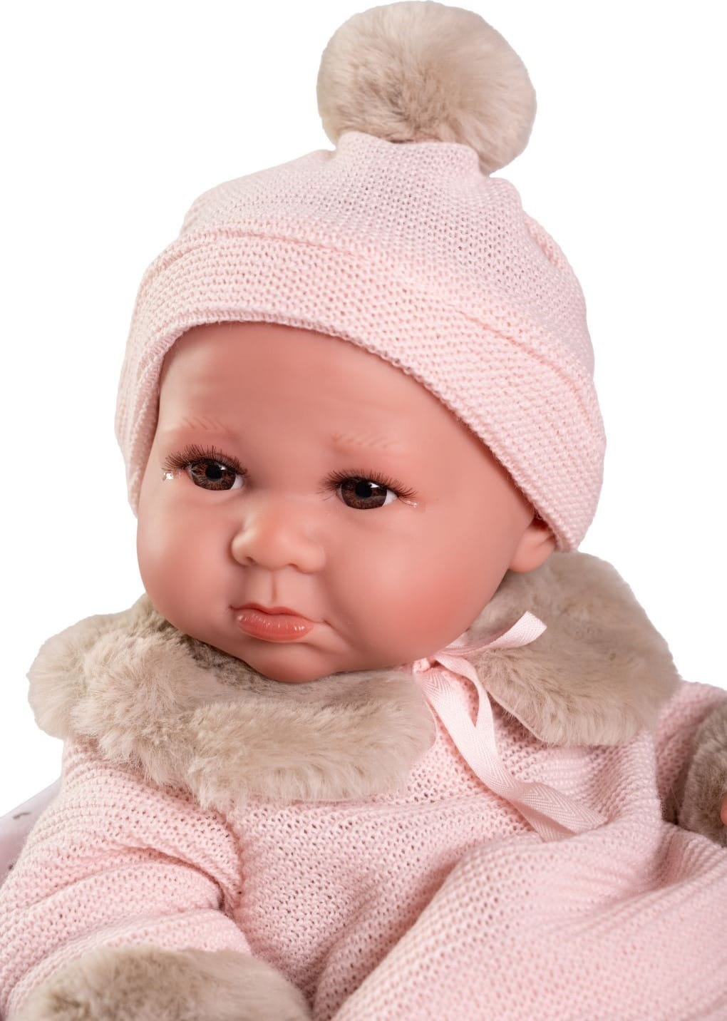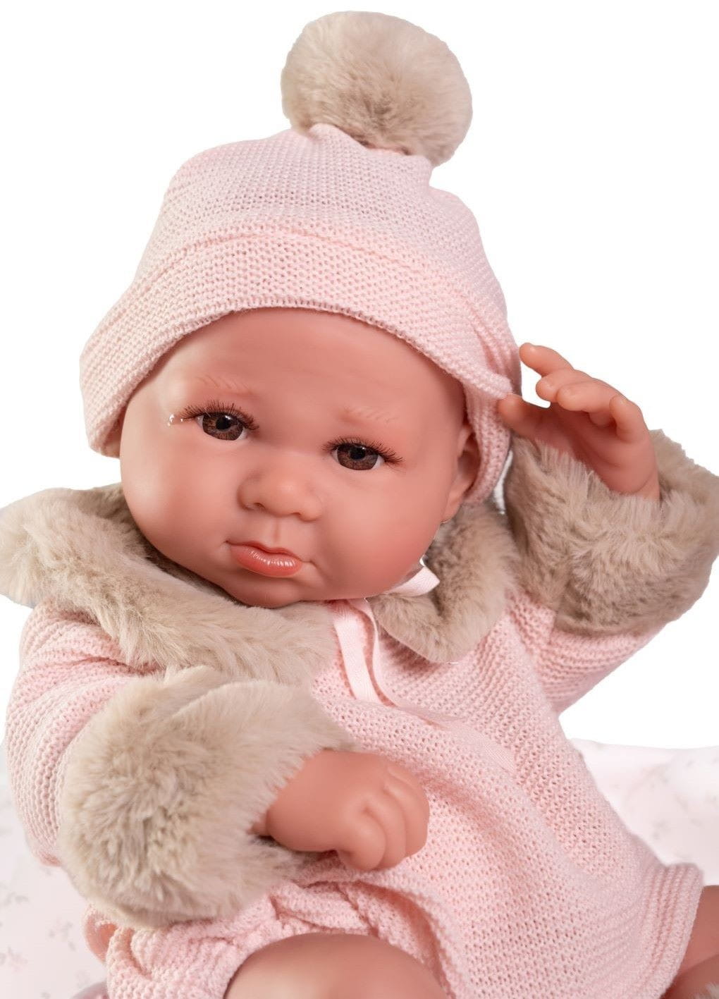 Lalka hiszpańska 50422 marki Antonio Juan to marzenie każdego dziecka, uwielbiającego zabawę w odgrywanie ról. Autentyczny wygląd pozwala z łatwością wcielić się w rolę troskliwego rodzica. Luca ubrana jest w oryginalnie zaprojektowany, sweterkowy komplet: spodenki i bluzę wykończoną ekskluzywnym futerkiem. Strój z łatwością można zdjąć, a bobasa przebrać lub wykąpać. W zestawie także czapka z pomponem oraz skarpetki.