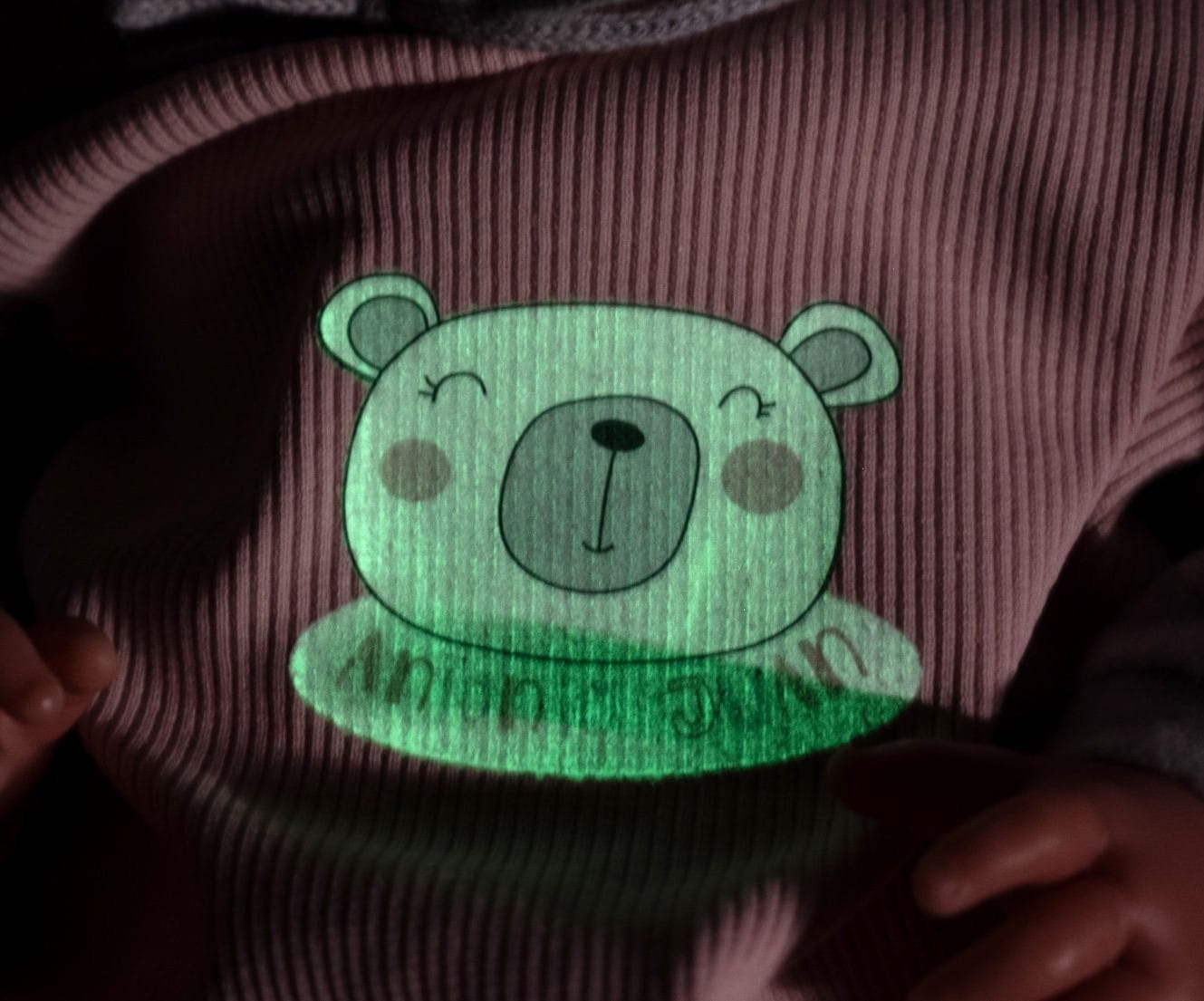 - przepiękna miękka piżamka wyróżnia się aplikacją misia, świecącego w ciemności ,