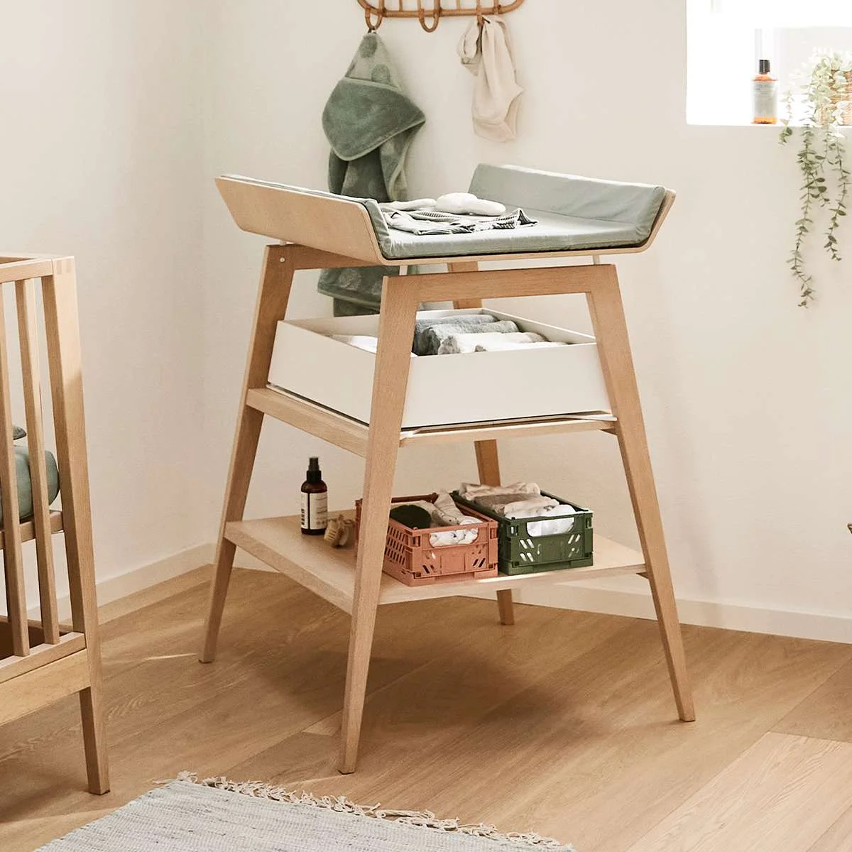 Przewijak Leander Linea™ to praktyczny, a jednocześnie estetyczny dodatek do Twojego domu. Dzięki kultowemu kształtowi i ukośnym liniom pasuje do serii Leander Linea™. Wysokie krawędzie zapewniają dziecku bezpieczeństwo i wygodę, a duża powierzchnia do przewijania zapewnia miejsce na cenne chwile z dzieckiem, na rozmowy, przytulanie i śmiech.