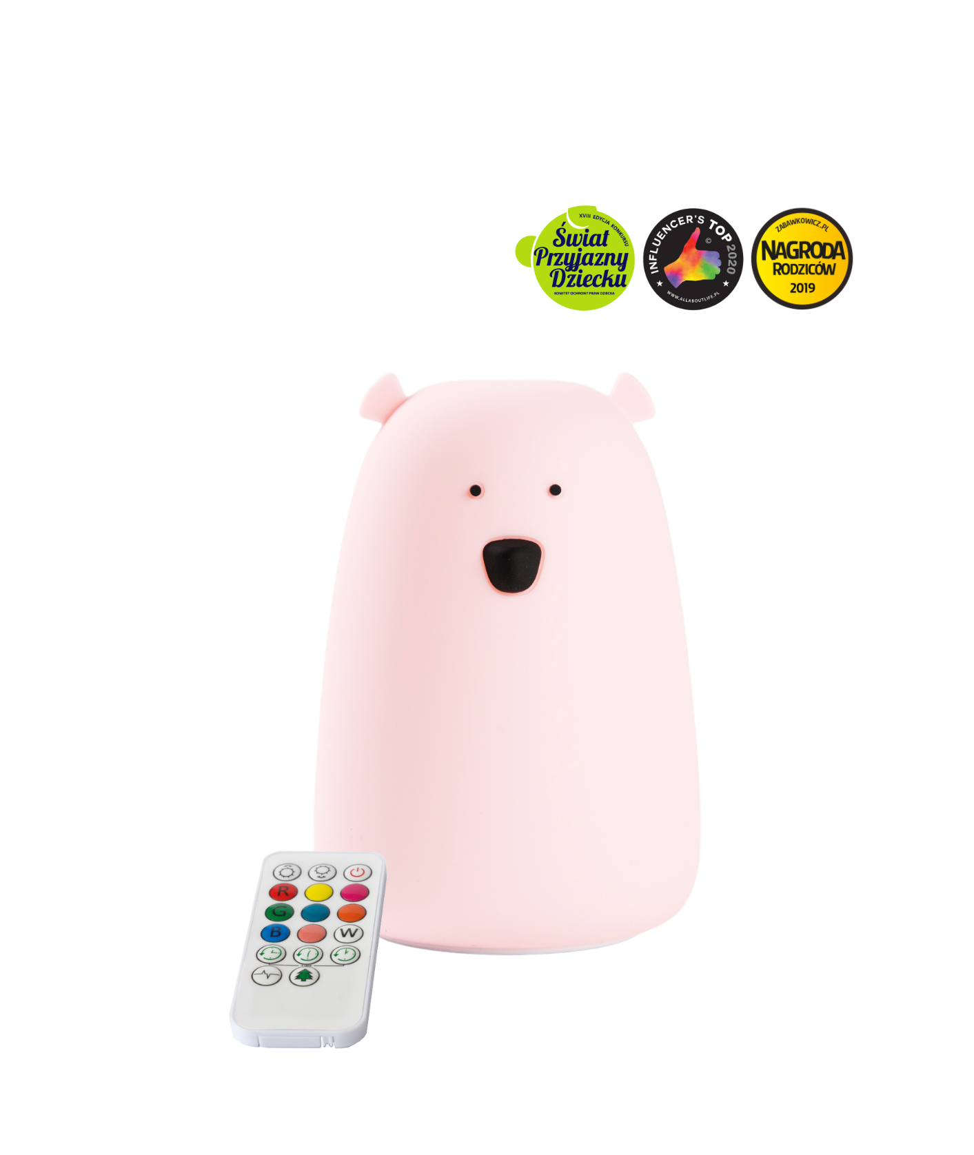 Miś Duży Lampka Silikonowa z Pilotem Różowa Rabbit & Friends