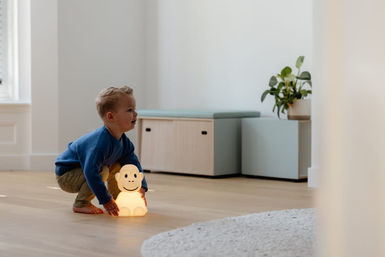 Lampka Monkey o wysokości 23cm to urocza małpka, która wniesie przytulne, ciepłe światło do pomieszczenia. Dzięki uroczemu designowi będzie stanowić piękną ozdobę każdego pomieszczenia (nie tylko dziecięcego pokoju). Lampka wykonana jest z odpornego na dziecięce ząbki silikonu, bezpiecznego i wolnego od BPA.