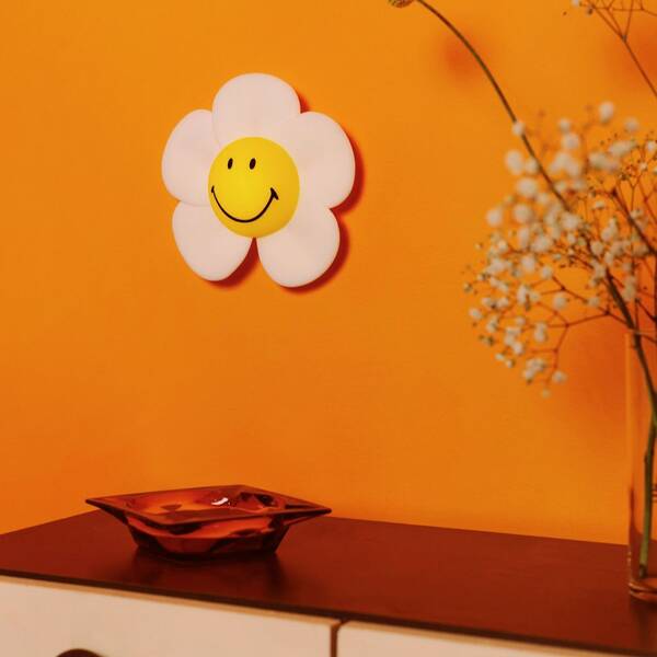 Lampka Smiley® Daisy o średnicy 18cm to kultowa uśmiechnięta buźka w wersji przenośnej - tym razem w formie uroczej stokrotki, którą można powiesić na ścianie. Dzięki pozytywnemu kolorowi i designowi będzie zarażać dobrym humorem w każdym pomieszczeniu (nie tylko w dziecięcym pokoju).
