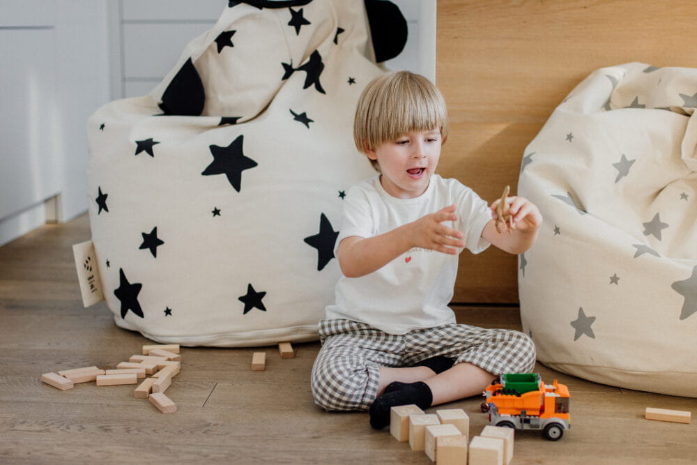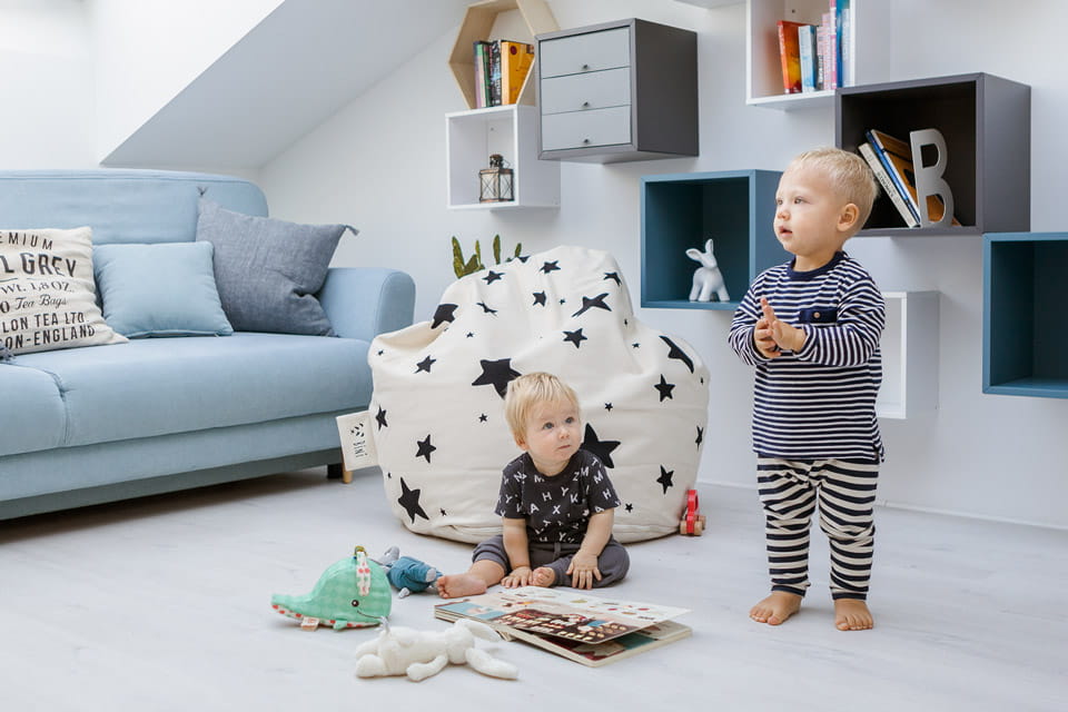 Puf dla dzieci BiNi stworzony do siedzenia, leżenia i wspólnej zabawy.