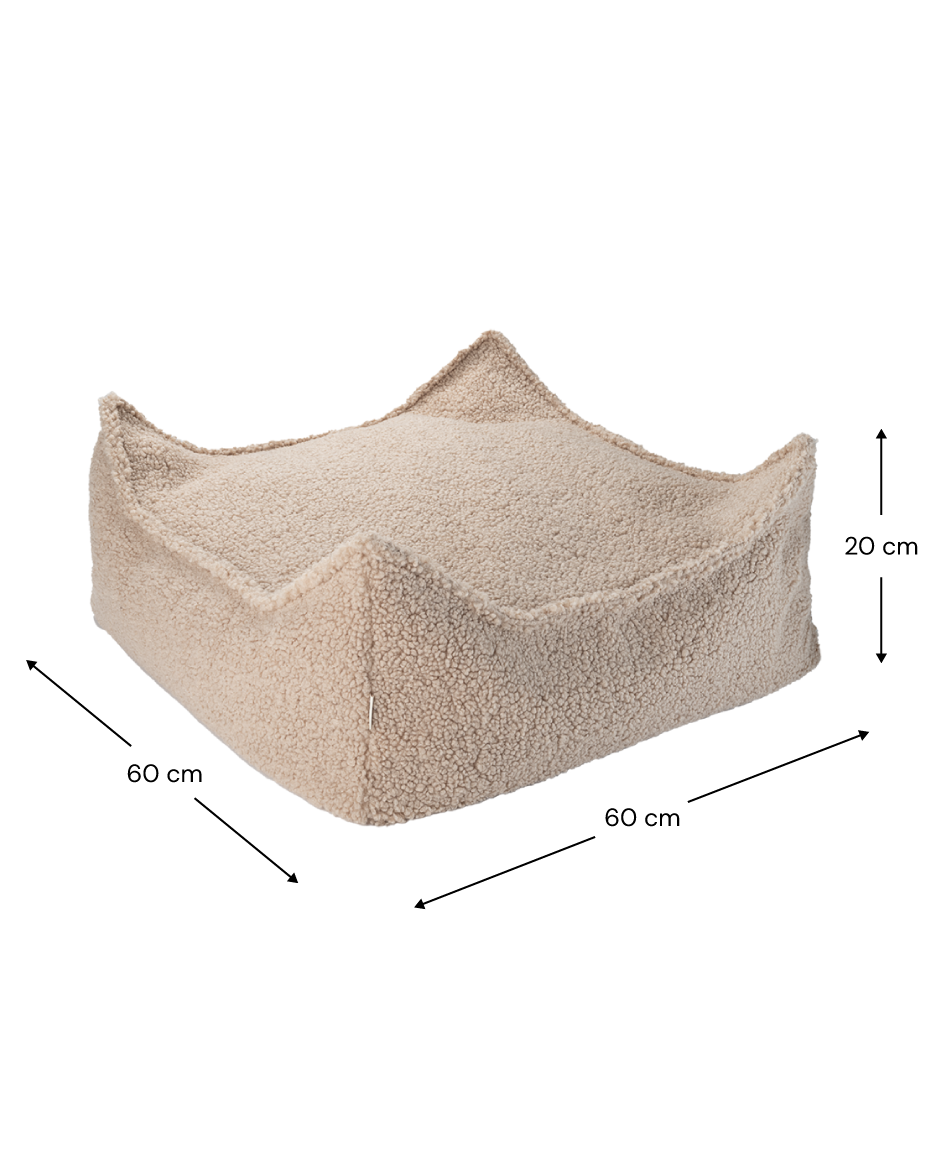 Beżowe siedzisko dla dziecka Wigiwama Biscuit to miękka pufa z tkaniny teddy, idealna do odpoczynku, zabawy i codziennego użytkowania w pokoju dziecka.
