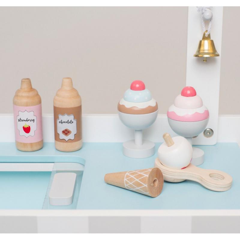 Kreatywna Zabawa w Domu, Sklepie czy Lodziarni: Zabawa w naszą lodziarnię nie tylko rozwija wyobraźnię i słownictwo, ale także doskonali sprawność manualną i koordynację ręka-oko. Nakładanie lodów za pomocą drewnianej łyżki, mieszanie polewy truskawkowej czy krojenie lodów na patyku to niezapomniane chwile pełne nauki i przyjemności.