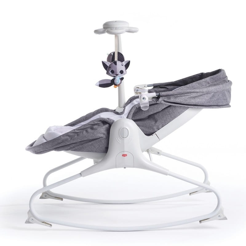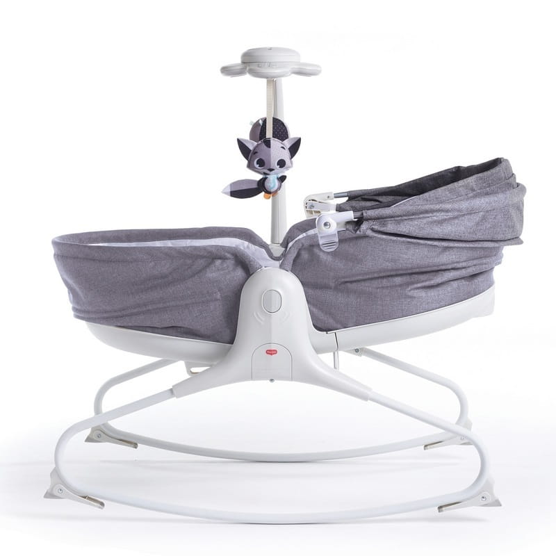 Atrakcyjnym dla dziecka elementem tego wielofunkcyjnego leżaczka jest zabawka świetlno-muzyczna na ruchomym ramieniu, która może zostać aktywowana przez dziecko. Zabawka posiada 9 melodii oraz dwa stopnie głośności. Dźwięk można ustawić w 3 trybach pracy: