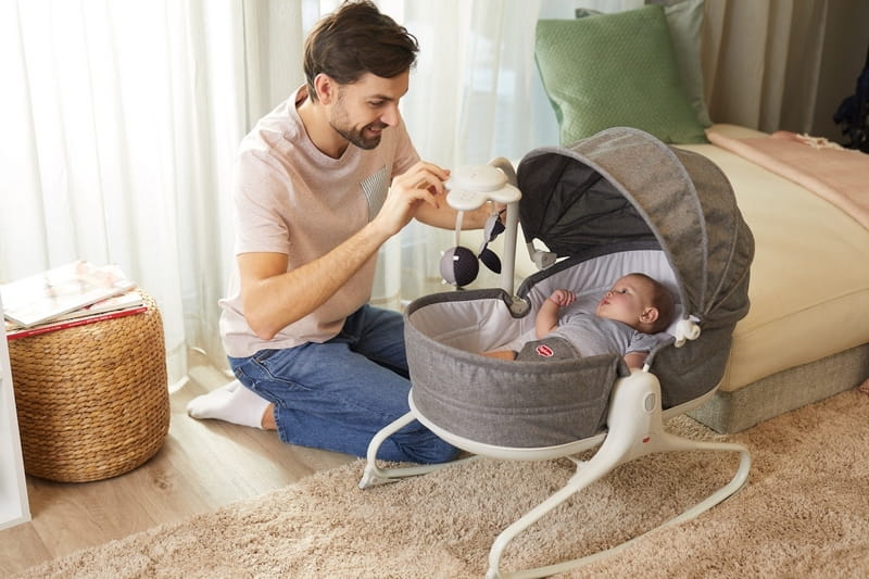 Przytulny leżaczek z daszkiem, wysokimi brzegami, uspokajającą muzyką i lekkimi wibracjami tworzy idealne otoczenie przypominające łono mamy, które otula i uspokaja dziecko, jednocześnie wspierając rozwój emocjonalny i społeczny.