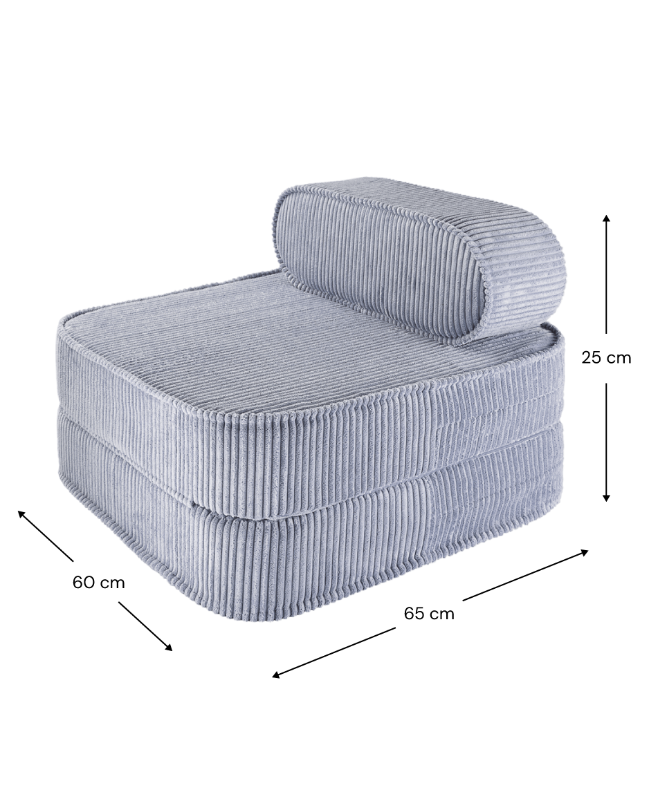 Sztruksowy fotel składany to stylowy i praktyczny dodatek do dziecięcego pokoju. Produkt został zaprojektowany w specjalny sposób, dzięki czemu można go łatwo przekształcić w materac do spania, a następnie z powrotem w krzesło obrotowe. Produkt wykonany z wysokiej jakości miękkiej tkaniny sztruksowej, która dzięki swojej luksusowej fakturze dostarcza niezapomniane wrażenia dotykowe małemu właścicielowi.
