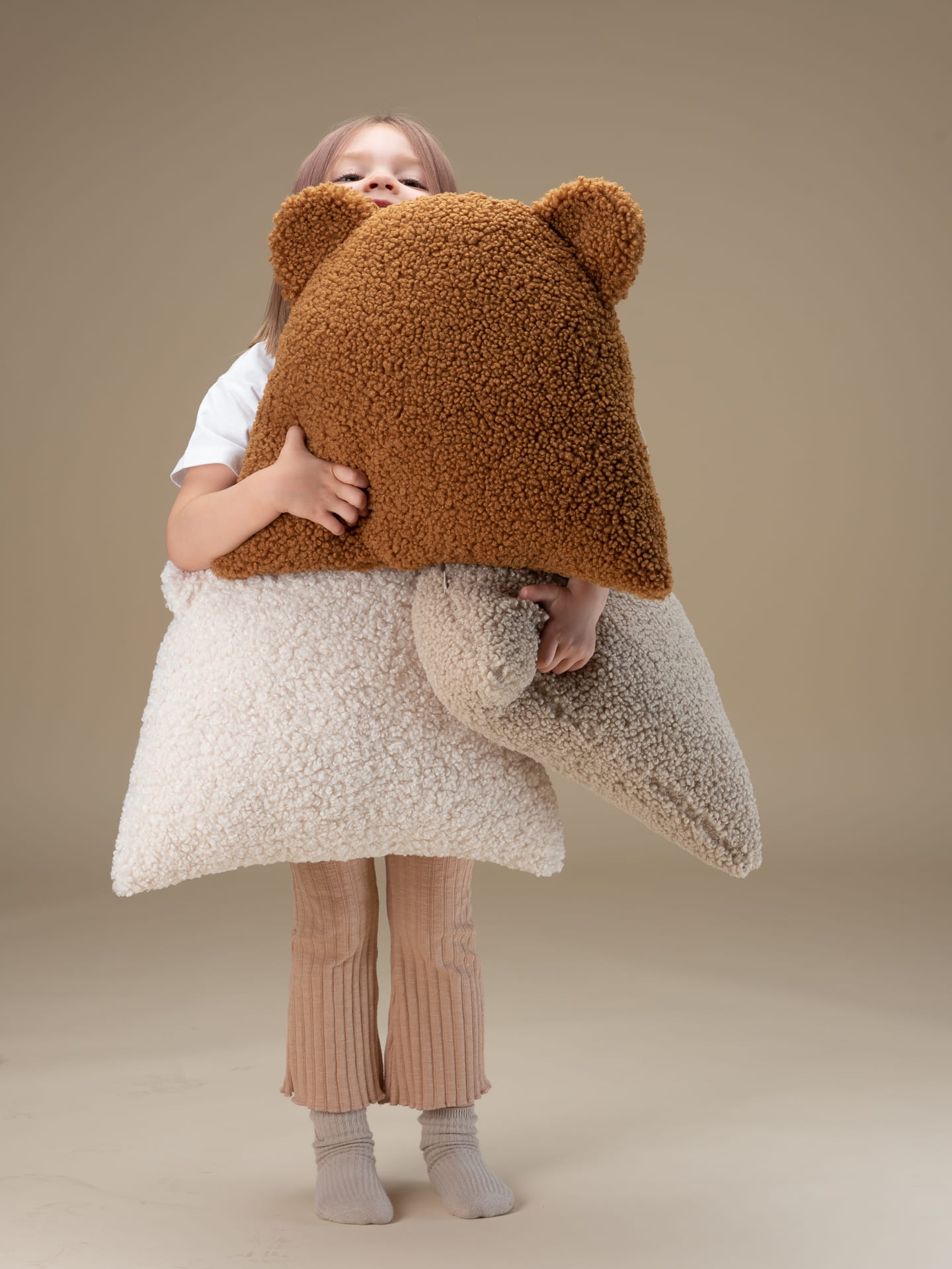 Ta poduszka z uszami misia w musztardowym kolorze to przytulny i zabawny akcent, który ożywi pokój Twojego dziecka. Wykonana z miękkiej tkaniny Teddy, zapewnia komfortowe doznania dotykowe, a uszy misia dodają jej wyjątkowego, ciepłego charakteru. Idealna jako przytulanka podczas drzemki lub zabawy, z pewnością wywoła uśmiech na twarzy malucha.