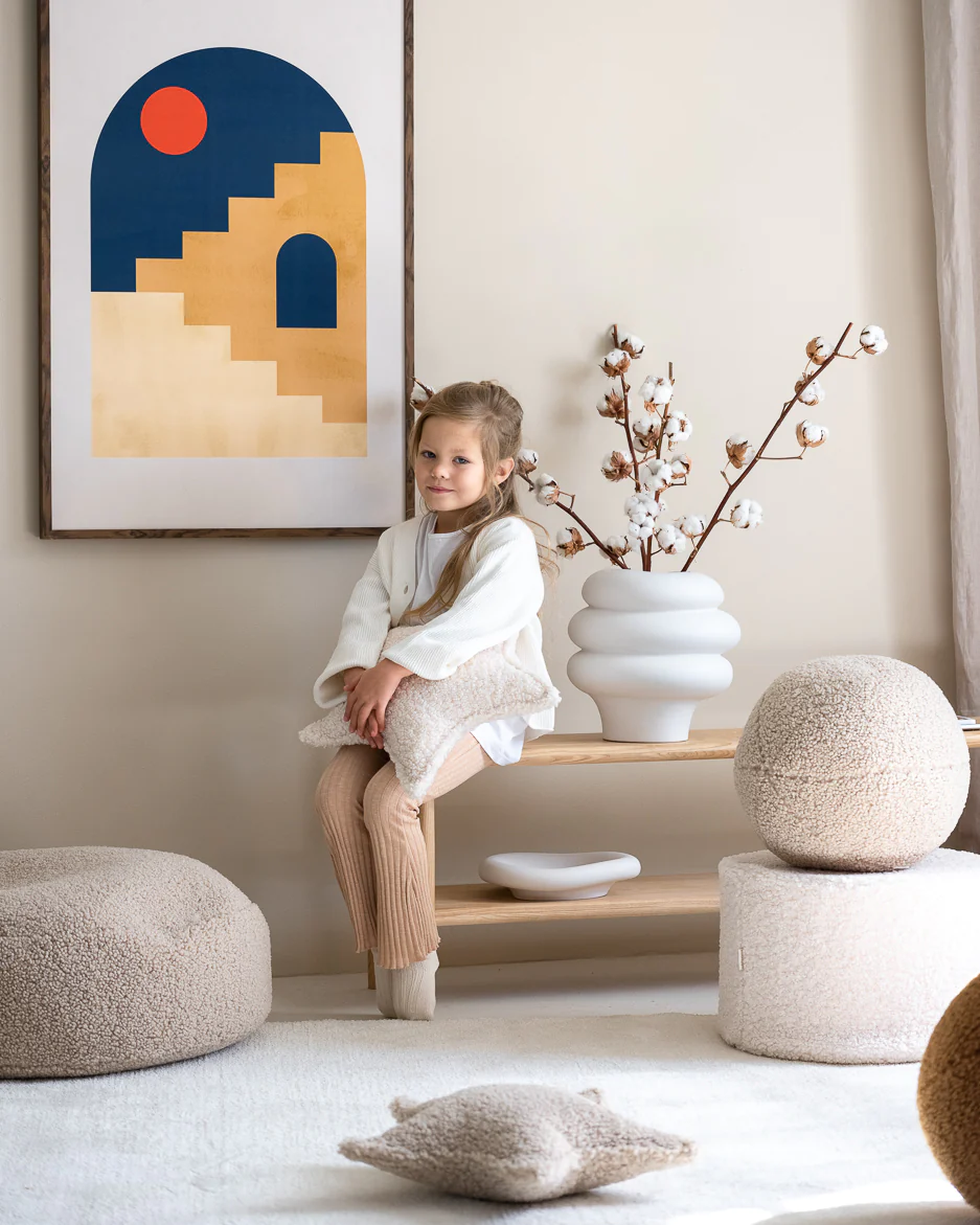 Wykonana z miękkiej tkaniny typu teddy, oferuje połączenie wygody i stylu, które doskonale uzupełnią wystrój każdego salonu. Jej wszechstronny kształt kulki pozwala na różnorodne zastosowania i sprawia, że łatwo ją można przenosić.