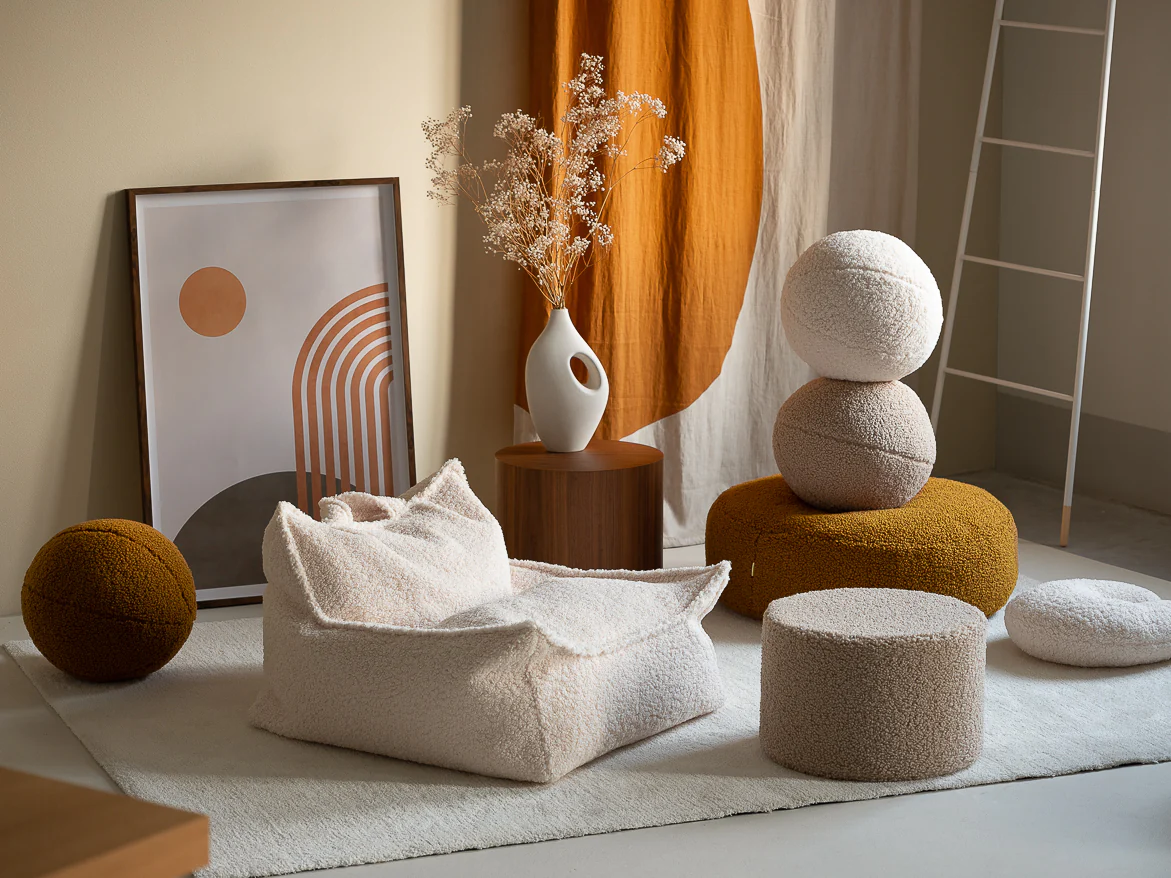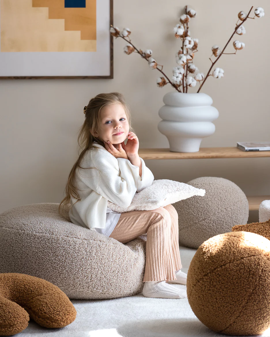 Wykonana z miękkiej tkaniny typu teddy, oferuje połączenie wygody i stylu, które doskonale uzupełnią wystrój każdego salonu. Jej wszechstronny kształt kulki pozwala na różnorodne zastosowania i sprawia, że łatwo ją można przenosić.