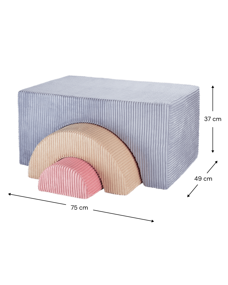 Zestaw do zabawy Rainbow od Wigiwama składa się z trzech modułów o różnych kształtach, które mogą być używane razem lub osobno, rozbudzając wyobraźnię Twoich maluchów. Bez względu na to, czy potrzebują przytulnego fotela, zabawowego stołu, wygodnego pufa czy tajemniczej chatki, ten wszechstronny zestaw jest idealnym rozwiązaniem!