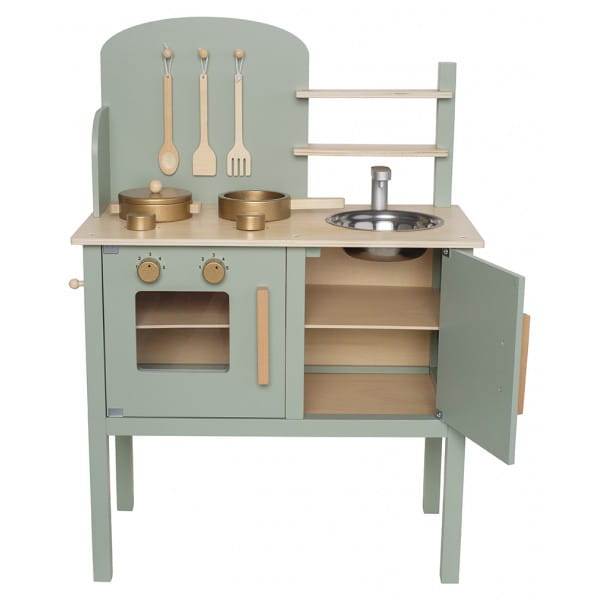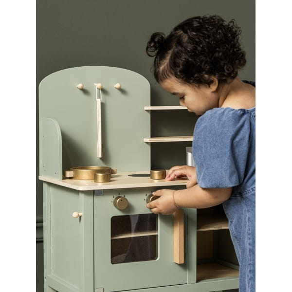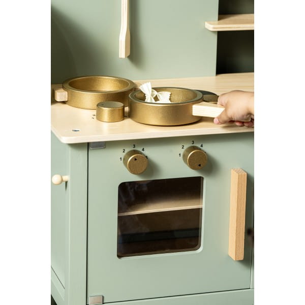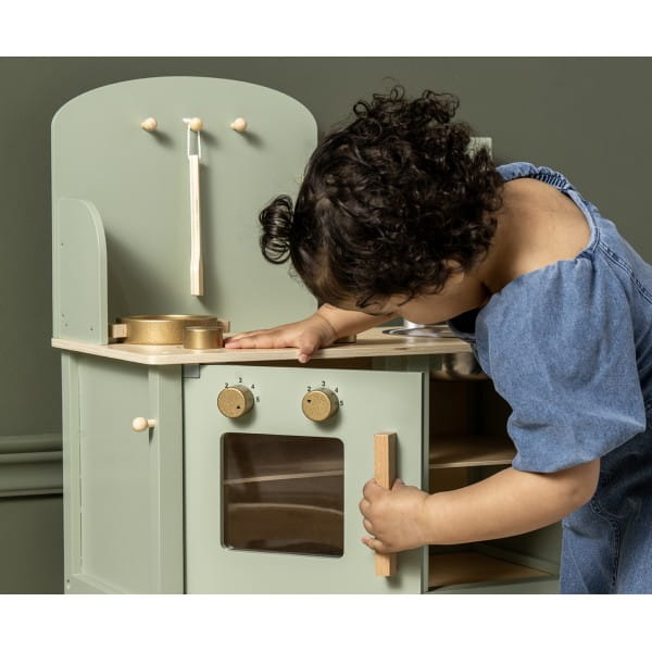 Zielona szałwiowa kuchnia drewniana dla dzieci, Jabadabado